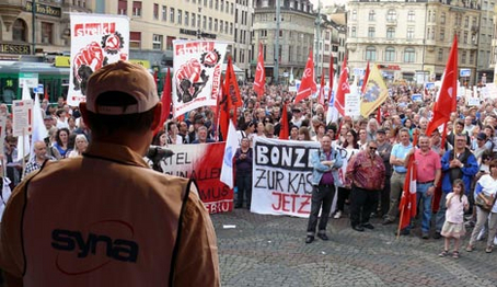 Knapp 2’000 Staatsangestellte haben heute Mittwochabend auf dem Basler Marktplatz gegen das 70 Millionen Franken schwere Sparpaket von Regierung und Parlament demonstriert.