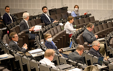 ![]() Landrat sagt Ja zur Hochleistungsstrassen-InitiativeLiestal/Basel, 2. April 2020Der Strassenbau hat an Popularität eingebüsst, wie jüngere Volksentscheide im Baselbiet zeigen. Trotzdem stimmte der Landrat an seiner heutigen Sitzung – aus Gründen der Coronaseuche ausnahmesweise im Basler Kongresszentrum abgehalten (Bild) – zugunsten der Volksinitiative "zum Ausbau des Hochleistungs-Strassennetzes". Das Gesetzesbegehren war von einem Komitee unter dem Präsidium von Wirtschaftskammer-Direktor Christoph Buser lanciert und im Jahr 2015 eingereicht worden. Weiterführende Links: ![]() "Windschutzscheiben-Mentalität" Das private Verkehrsaufkommen wird zunehmen ... solange die Strassen zur Verfügung stehen. Autos werden immer grösser, benötigen also auch mehr Platz. In den meisten Autos sitzt eine Person. Viele Städte bauten in den letzten Jahren ihre Strassen aus, Stau hat es immer und überall. Wer das nicht sieht oder sehen will, bezeichne ich als blind oder unehrlich. Die Windschutzscheiben-Mentalität feiert Urständ. Ruedi Basler, Liestal |