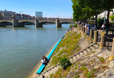 ![]() Meerblauer Stachlerpfad statt Holzterrassen am Rhein-UferBasel, 25. Mai 2020Wer genau hinschaut, entdeckt an der Kleinbasler Rheinufer-Seite verwundert einen ungewohnten Farb-Akzent: einen meerblauen Streifen ganz nah am Wasser – in der Umgebung, in der die umstrittenen Holzterrassen mit der in den Rhein ragenden Plattform geplant waren. Eine Nachfrage beim Bau- und Verkehrsdepartement ergab, dass die blaue Einfärbung des Stachlerpfads "eine kleine Massnahme im Rahmen der IBA Basel 2020" darstellt. Weiterführende Links: ![]() "Durch Stadtbildkommission gezwungen" Einer meiner Nachbarn malte im Zuge einer Renovation sein Haus in fröhlichen, mediterran anmutenden Farben an, in Vanille- und Aprikosetönen. Ungewöhnlich, aber nicht störend. Er wurde von der Stadtbildkommission gezwungen, die Übermalung mit einer "angemessenen" Farbe neu zu übermalen. Ebenso wurde der Stil seiner Haustüre und die Gestaltung des Vorgartens bemängelt, die niemanden beeinträchtigte. Dies alles auf einem Privatgrundstück. Aber wenn der Staat auf öffentlichem Grund an prominenter Stelle grell BLAU macht, ist das offenbar erlaubt. Esther Murbach, Basel "Superscheusslich" Dieser blaue Rheinbordstreifen ist wirklich superscheusslich. Hier sollte der Heimatschutz Einsprache machen, was er wahrscheinlich nicht wagt, denn wenn etwas offiziell zum 3-Länder Projekt deklariert wird, herrscht feiges Schweigen. Alexandra Nogawa, Basel |
