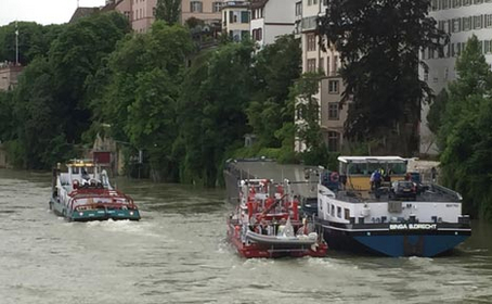 Die Basler Berufsfeuerwehr barg heute Samstagnachmittag auf dem Rhein gemeinsam mit dem Schubschleppschiff "Vogel Gryff" einen niederländischen Frachter, der eine Panne erlitten hatte. Der Frachter war kurz nach 13.30 Uhr auf einer Leerfahrt bergwärts unterwegs gewesen, als er vermutlich aufgrund eines technischen Defektes nicht mehr manövrieren konnte. Der Besatzung gelang es, das Schiff aus eigener Kraft am Grossbasler Rheinufer auf Höhe der Alten Universität in eine sichere Position zu bringen. Von dort konnten das Löschboot der Berufsfeuerwehr und das Schubschleppschiff den Frachter in den Schleusen-Vorhafen bei Birsfelden abschleppen. Während der Bergung musste der Rhein für die Schifffahrt gesperrt werden.
