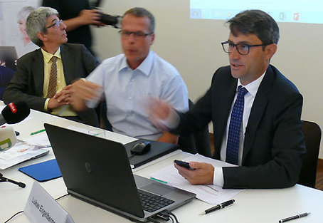 Es war ein Augenblick, in dem der sonst so zurückhaltende und vorsichtige CVP-Politiker an einer Pressekonferenz in Basel plötzlich ganz Persönliches preisgab: Vor den Medienkameras und den Augen zahlreicher Journalisten eröffnete Engelberger sein ganz individuelles digitales Patienten-Dossier. Schritt für Schritt sah man den CVP-Politiker an seinem Laptop hantieren (Bild). Dabei erhielt die Medien-Öffentlichkeit auf Grossleinwand Einblick beispielsweise in seinen Impfausweis, in seine Blutwerte, aber auch in seine Patientenverfügung und gar in seine Organspende-Einwilligung.