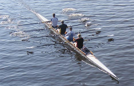 Auf dem Bild sieht man einen Vierer mit Steuermann. Dieser blickt nach vorne. Wenn aber nachts ohne Steuermann/Frau gefahren wird, könnte bei der vordersten Person irgendwie ein Rückspiegel oder ähnliches angebracht werden, damit sich nicht laufend jemand umdrehen muss. Ein Frachtschiff ist auch nachts dank den Positionslichtern gut sichtbar.