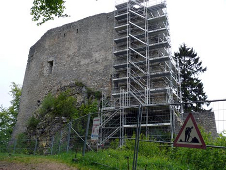 Doch im Mai 2012 musste das mittelalterliche, um 1330 von den Grafen von Thierstein gegründete Bauwerk aus Sicherheitsgründen geschlossen werden: Den Besuchern blieb der spektakuläre Ausblick bis in die Alpen, den Tafeljura und den Schwarzwald für mehr als anderthalb Jahre verwehrt. Nach einer baulichen Sicherung der rund 17 Meter hohen und bis zu 3,6 Meter starken Schildmauer (Bild) war die Farnsburg ab November 2013 für die Öffentlichkeit wieder zugänglich.