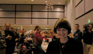 Höhepunkt der Selbstdarstellung war denn auch der von einer stehenden Ovation begleitete Einzug der neuen SP-Bundesrätin Micheline Calmy-Rey. In schwarzer Hose und schwarzem Jacket, bewusst und ohne Gesten des Triumphs, trat sie vor die Basis. Vor allem von Frauen und der Partei-Jugend wurde sie symbolträchtig beschenkt: Die Rosen als sozialisitisches Emblem, Tee für die Teeliebhaberin und ein Schmuckstein in Herzform aus Lapislazuli, das fiebersenkend, kopfschmerzmildernd und spirituell stimulierend wirken soll.